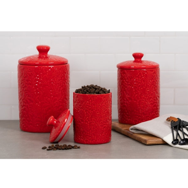 Ceramic Canister Sets For Kitchen Red - Kitchen Canisters Canister Sets Kirklands - Whatever your kitchen theme you can get something that's going to fit in perfectly, from retro use these painted ceramic canisters to hold snacks and ingredients or small kitchen necessities.